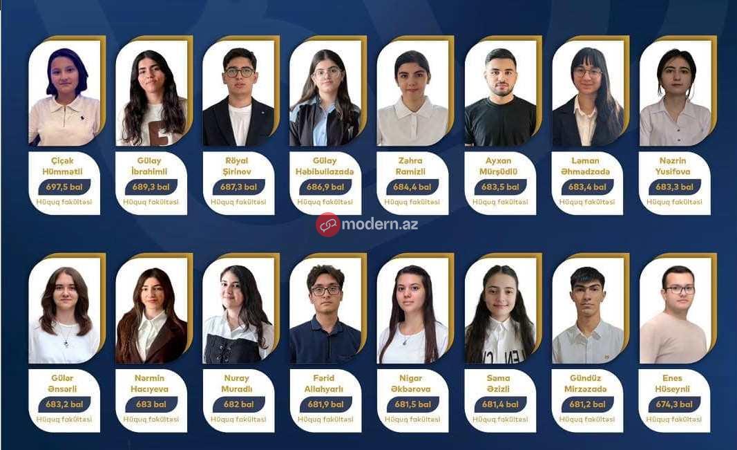Modern.az-ın məlumatına görə, bu il Prezident təqaüdünə layiq görülən 102 tələbədən 16-sı Bakı Dövlət Univerisetinin 1-ci kursunda oxuyur. Onların hamısı Hüquq fakültəsinə qəbul olunan gənclərdir.
