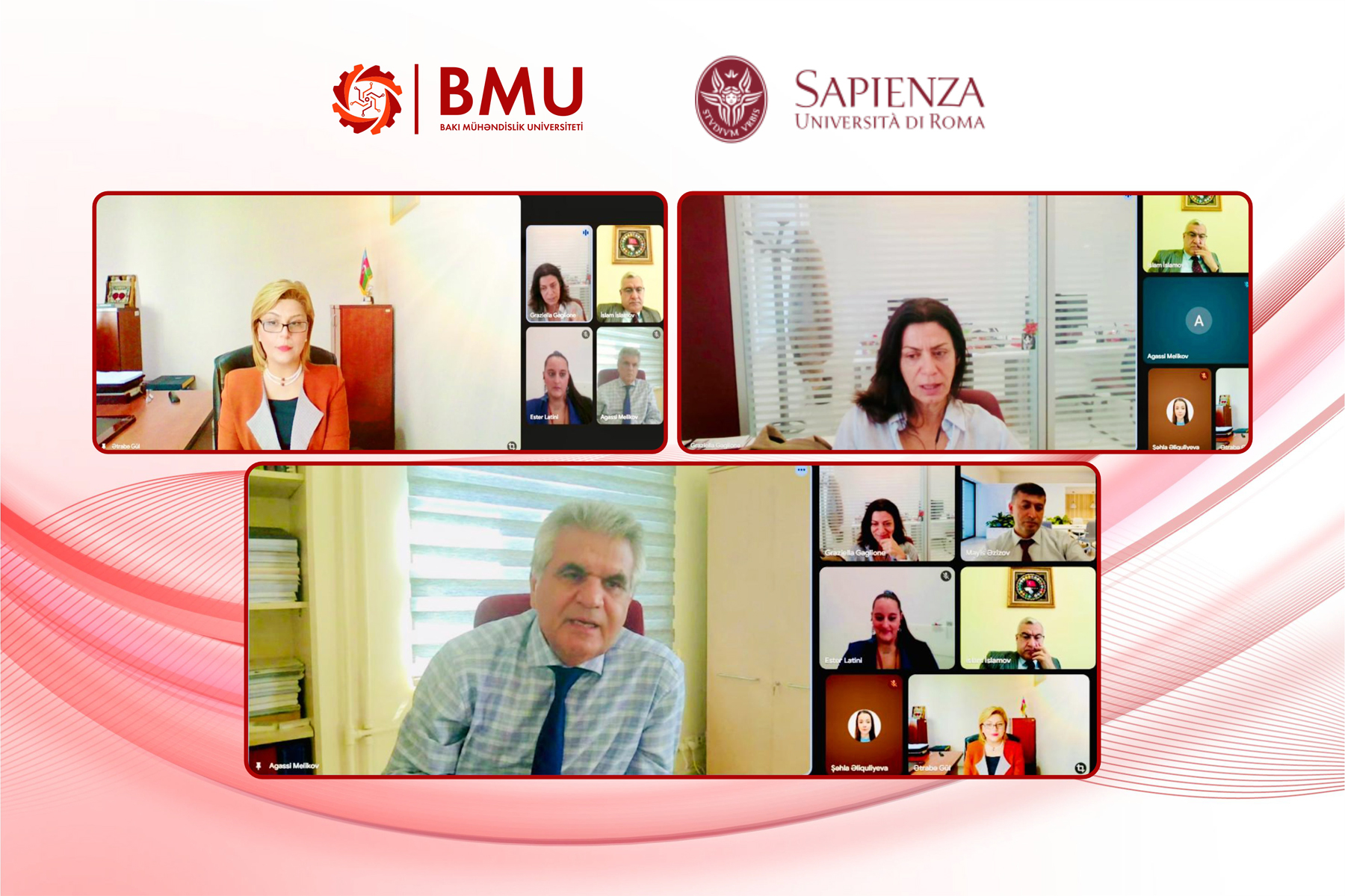 Sapienza Universitetinin Beynəlxalq əlaqələr şöbəsinin müdiri Graziella Gaglione ali məktəbin fəaliyyəti və beynəlxalq əməkdaşlıq imkanları barədə təqdimat edib. Sapienza Universitetinin nümayəndələri BMU ilə daha geniş əməkdaşlığın hər iki tərəf üçün səmərəli nəticələr verəcəyinə inamlarını vurğulayıblar.